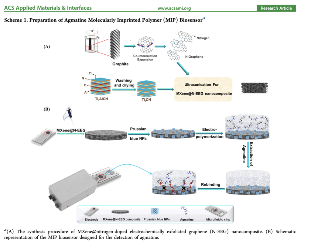 Babamiri, B.; Sadri, R.; Farrokhnia, M.; Hassani, M.; Kaur, M.; Roberts, E. P. L.; Mohammadi, M.; et al. Molecularly Imprinted Polymer Biosensor Based on Nitrogen-Doped Electrochemically Exfoliated Graphene/Ti₃CNTₓ MXene Nanocomposite for Metabolites. ACS Appl. Mater. Interfaces 2025, 16 (21),